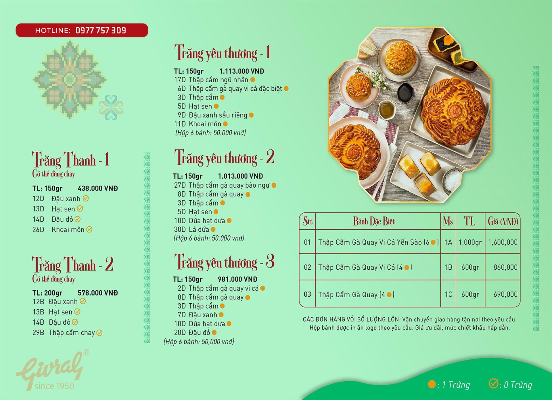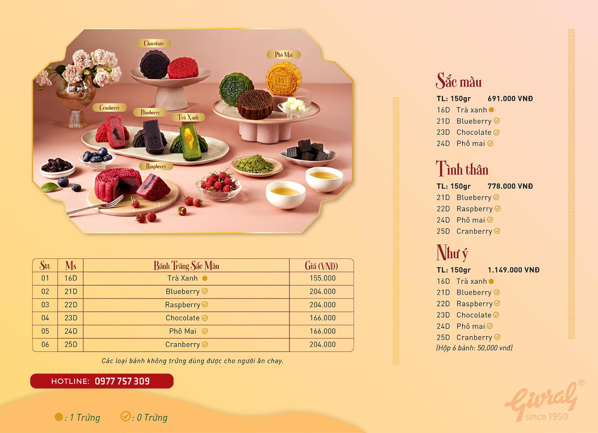 Givral là một thương thiệu bánh trứ danh, cao cấp không chỉ ở Việt Nam mà còn ở Pháp. Cũng ít nhiều mang tinh hoa của nước Pháp hoa lệ nên những sản phẩm bánh trung thu được tạo ra đều có hình thức vô cùng tinh tế sang trọng. Cực kì thích hợp làm quà tặng để thể hiện sự quan tâm, yêu thương đến gia đình, bạn bè và đối tác.