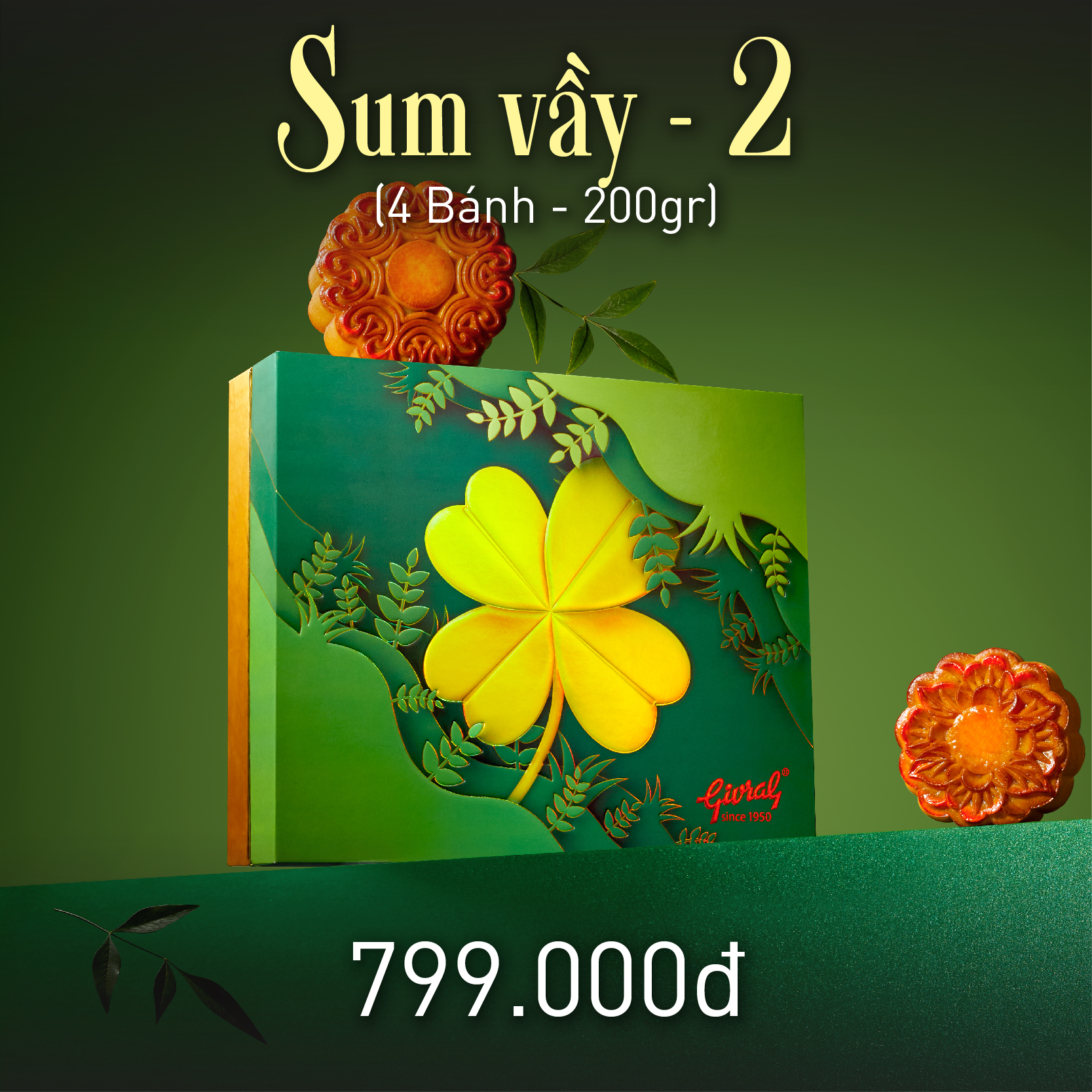 Combo Sum Vầy 2 đúng như ý nghĩa của tên gọi : bao gồm 4 dòng bánh cao cấp có trọng lượng 200g mỗi bánh. Bánh được các nghệ nhân chắt chiu từng chi tiết để đem tới những chiếc bánh đẹp về hình thức, hấp dẫn nhờ mùi vị, ý nghĩa chính nhờ những nhân bánh tuyệt hảo.